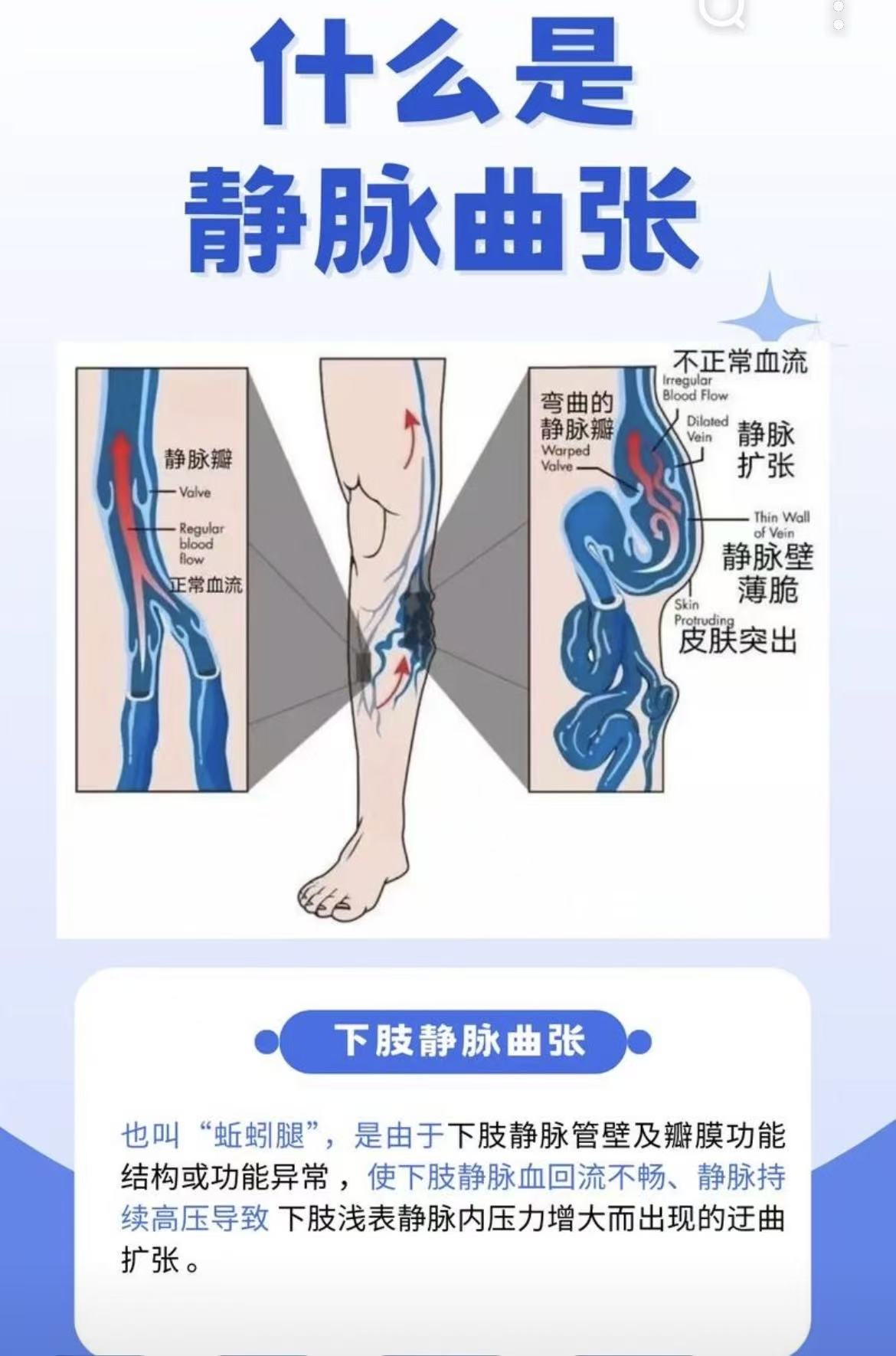 静脉曲张本质上是一种需要关注的血管疾病。 它表明您腿部的静脉瓣膜功能出现了障碍,导致血液无法有效回流到心脏,淤积在腿部静脉中。